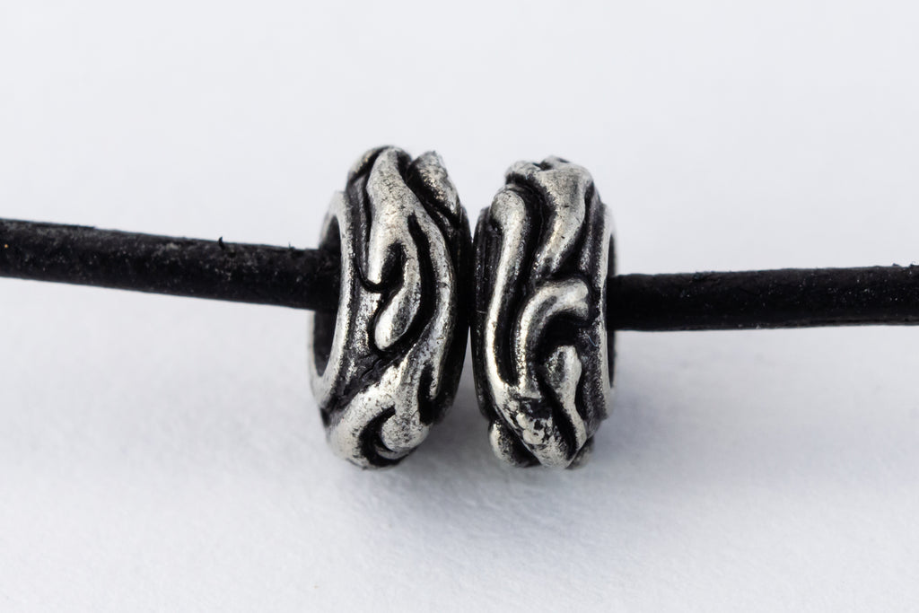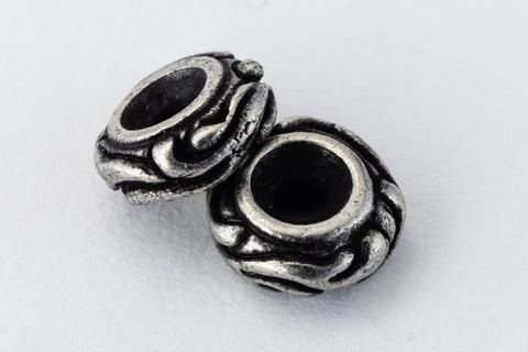 6mm x 2.5mm antique pewter "Woodland" style bead with raised floral motif and 1.5mm hole.