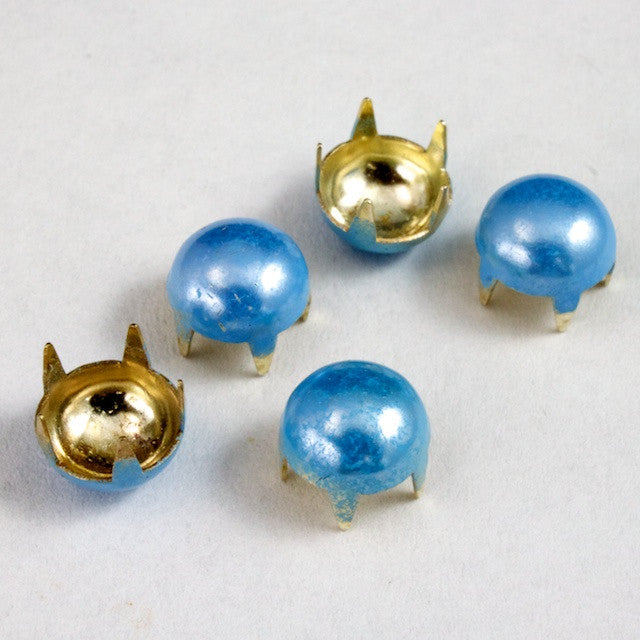 6mm domed brass stud with baby blue coating and 5 prongs.