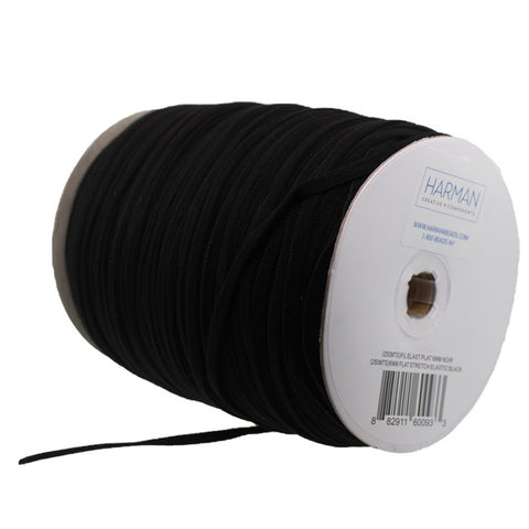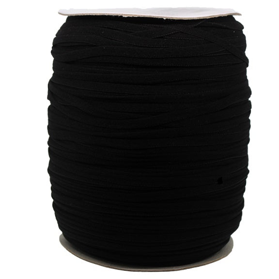 Black flat elastic with a soft, comfortable feel perfect for masks.