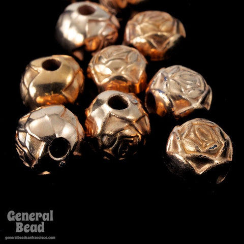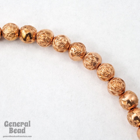 6mm bright copper round rose bead with 1mm hole.