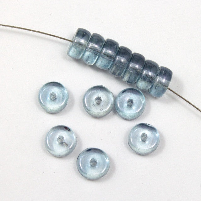 6mm transparent pale blue-grey flat rondelle with hole in center.
