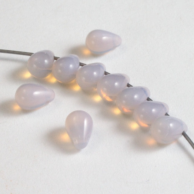 4mm x 6mm tiny teardrop in pale lavender with hole through top.