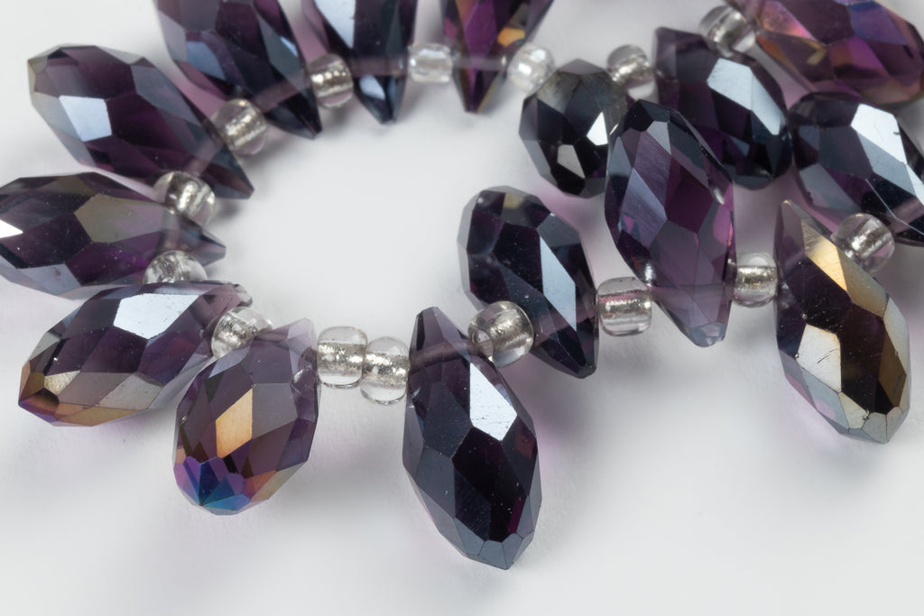 Strand of 6mm x 12mm faceted briolette drops with top drilled hole in sparkling Chinese Crystal.