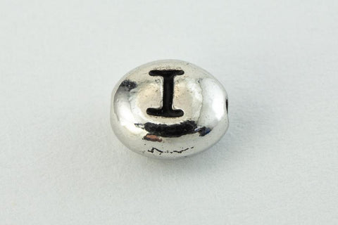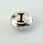 6mm x 5mm oval bead with inscribed capital Roman letter "I" and lengthwise hole.