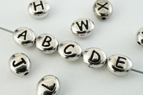 6mm x 5mm oval bead with inscribed capital Roman letter "N" and lengthwise hole.