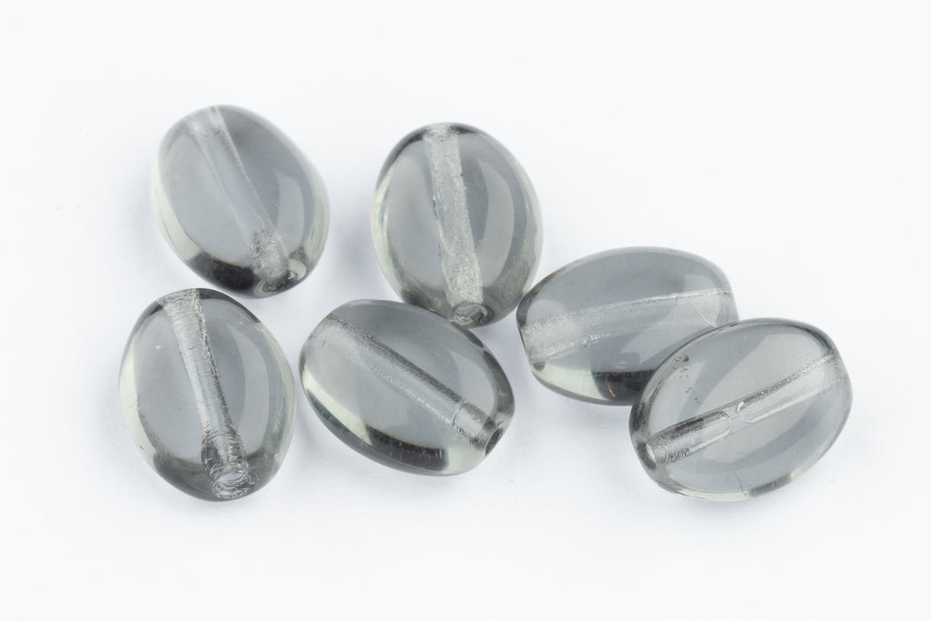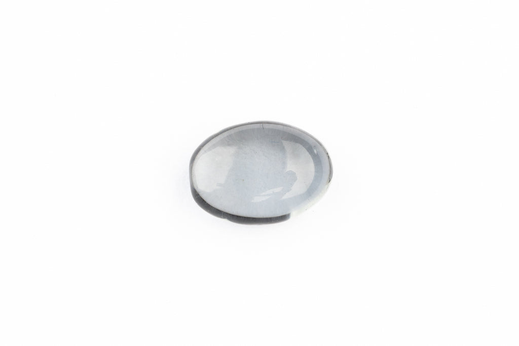 6.34mm x 8.15mm transparent gray flat oval with lengthwise hole.