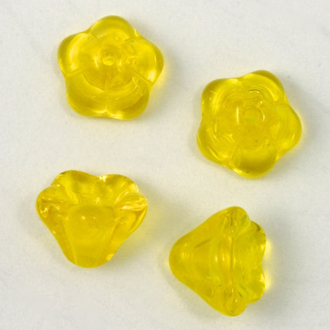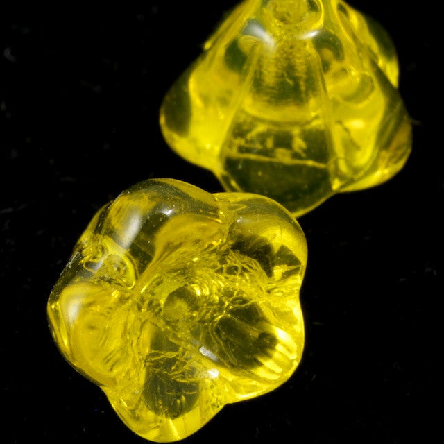6mm x 8mm transparent yellow bell shaped flower with vertical hole.