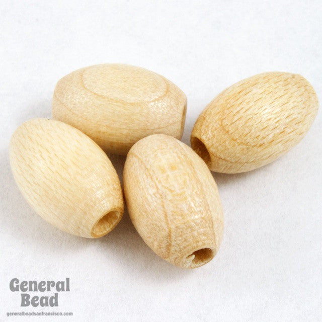6mm x 9mm natural color oval wood bead with 1mm hole.