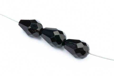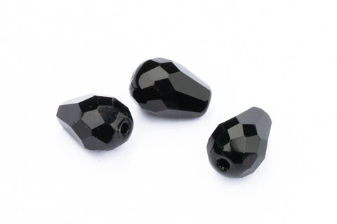 6.3mm x 8.97mm black faceted teardrop with vertical hole.