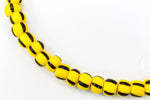 Opaque yellow with black stripes.