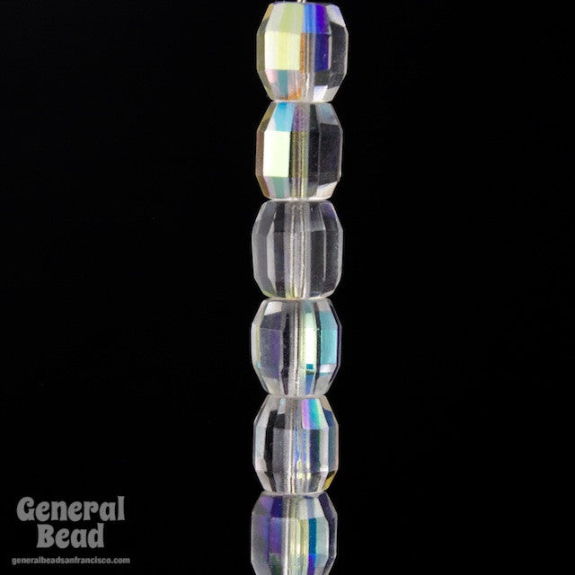 7.5mm x 7mm pressed glass faceted "Fire polished" barrel bead.