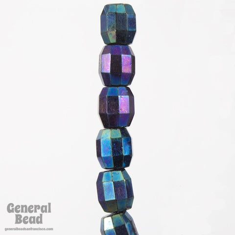 7.5mm x 7mm Metallic Blue Iris Fire Polished Barrel #GCG002