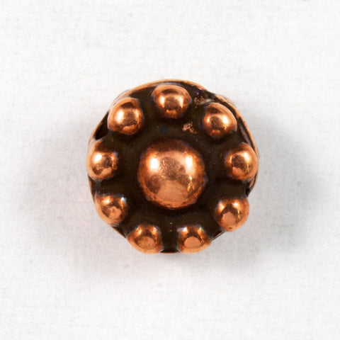 7mm antique copper flower bead. Detail on both sides and sideways hole.