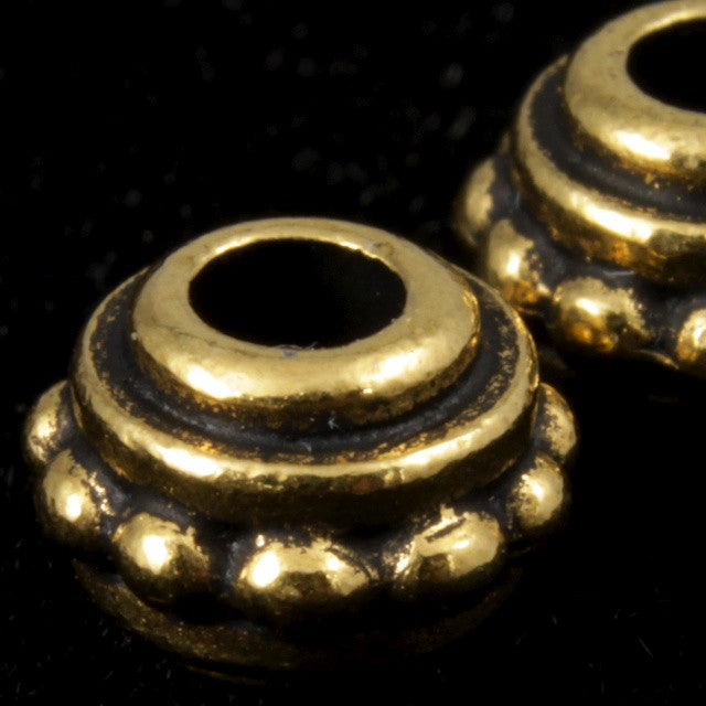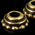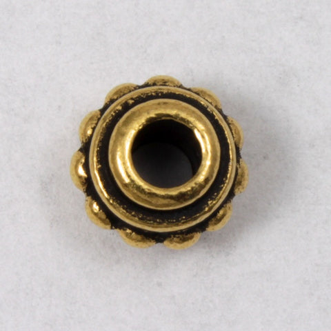 7mm antique gold color bead with beaded texture and 2.5mm hole.