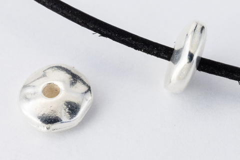7mm bright silver nugget heishi spacer bead with 1.25mm hole.