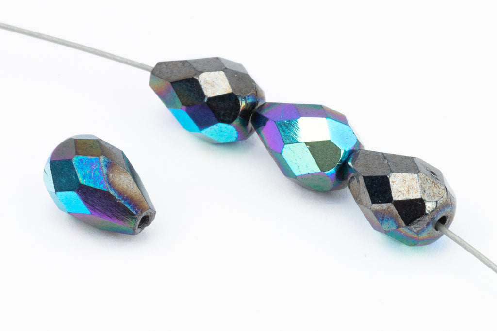 6.85mm x 9.82mm glass faceted teardrop with vertical hole.