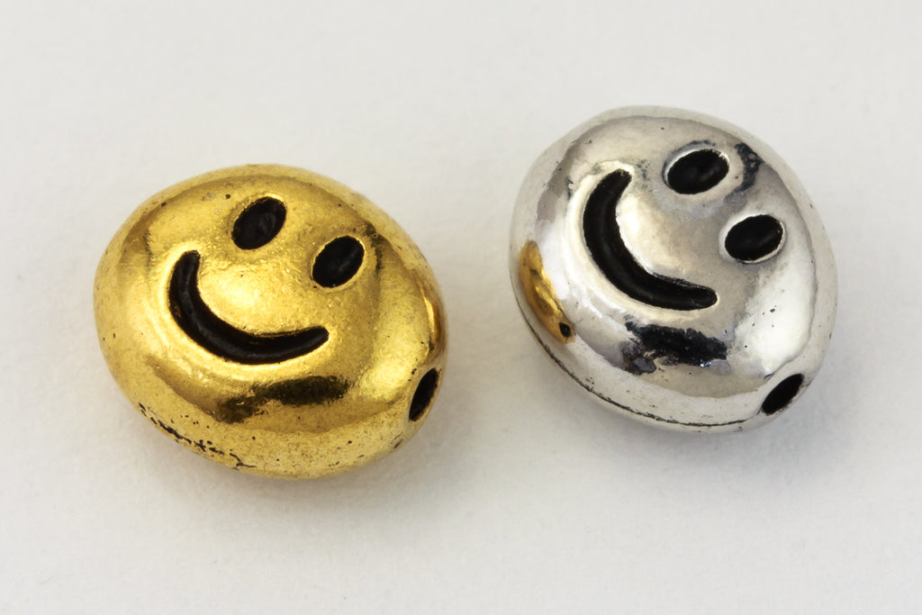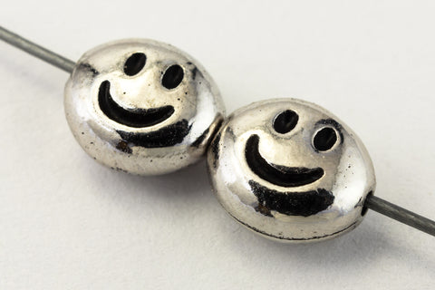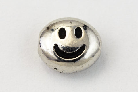 6.75mm x 6mm antique silver bead with inscribed smile symbol and lengthwise 1mm hole.