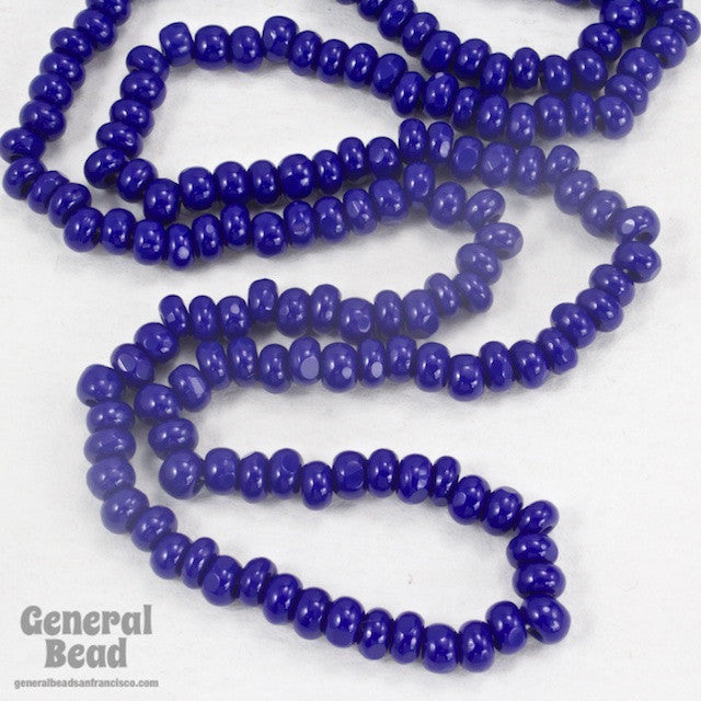 Size 8/0 Charlotte cut opaque royal blue glass seed beads.