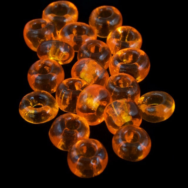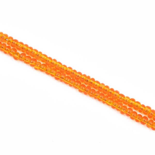 Size 8 transparent tangerine seed bead.