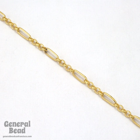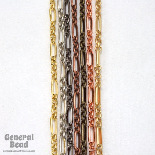 Chain of 8.5mm x 3mm flat rectangle links alternating with 3mm round links.