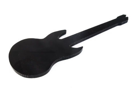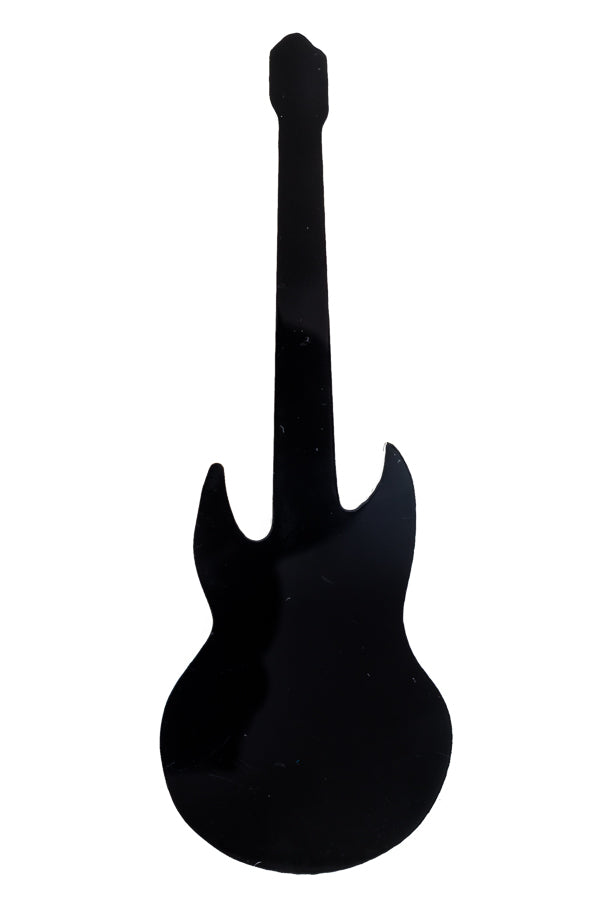 80mm x 24mm opaque black flat electric guitar silhouette. 3mm thick.