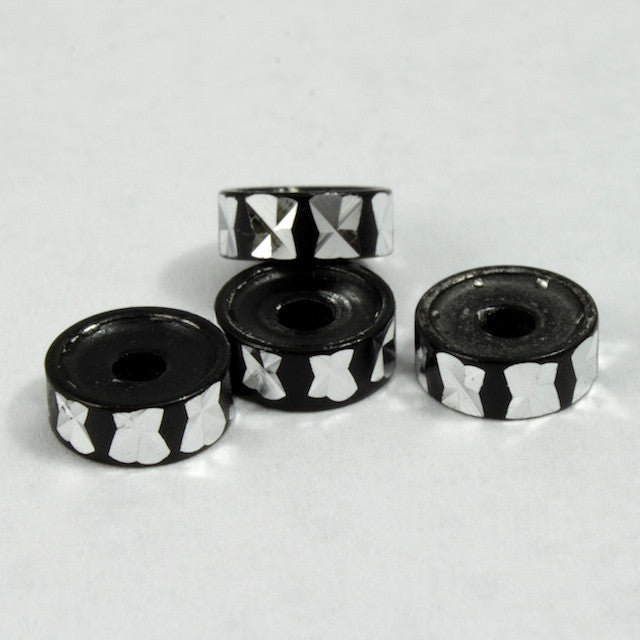8mm black and silver aluminum rondelle with 2mm center hole.