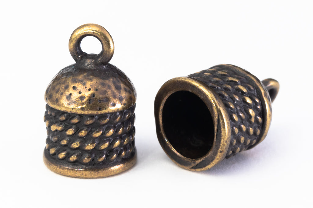16.8mm high, 11.5mm wide glue-in cord end with wrapped rope texture.
