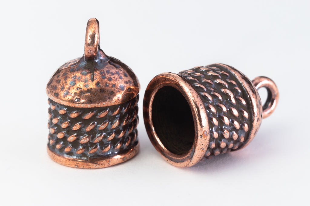 16.8mm high, 11.5mm wide glue-in cord end with wrapped rope texture.