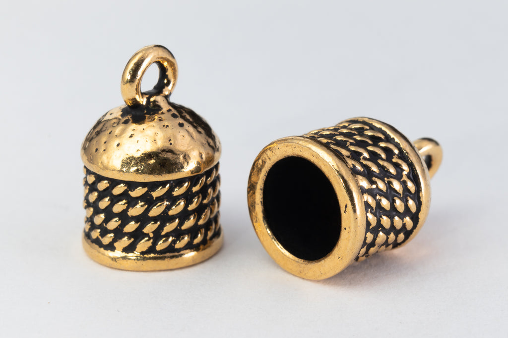 16.8mm high, 11.5mm wide glue-in cord end with wrapped rope texture.