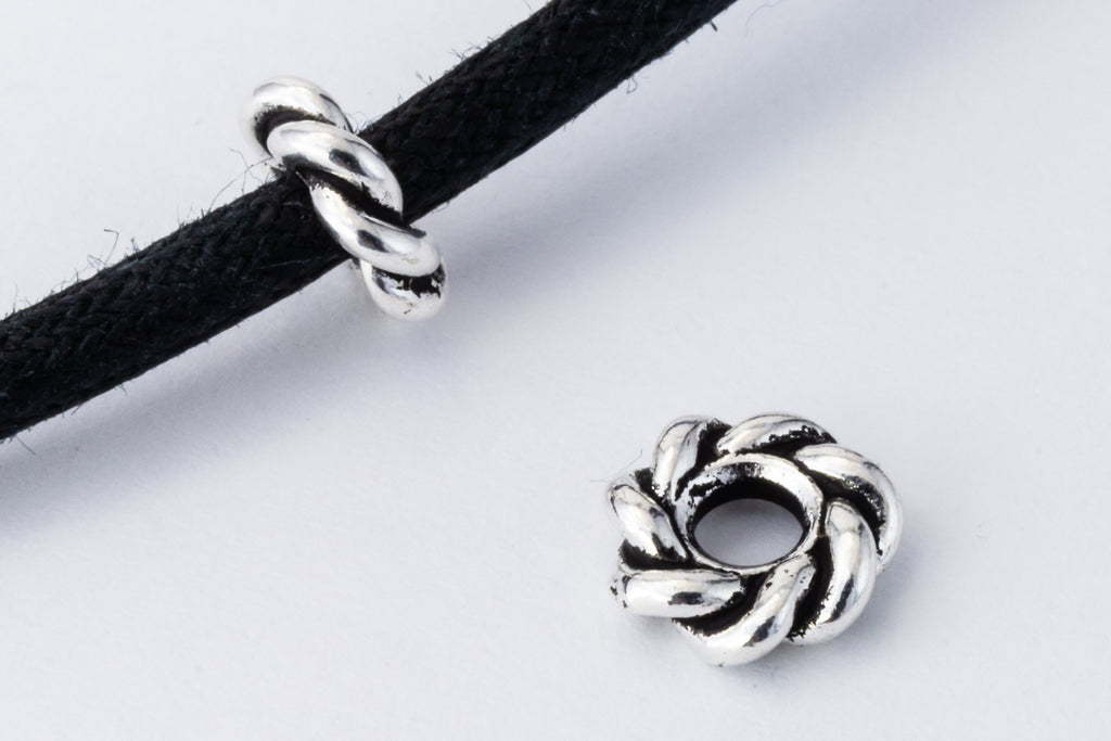 7.5mm x 2.25mm antique silver twisted large hole bead.