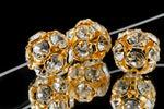8mm rhinestone ball with gold tone casings and Crystal clear rhinestones.