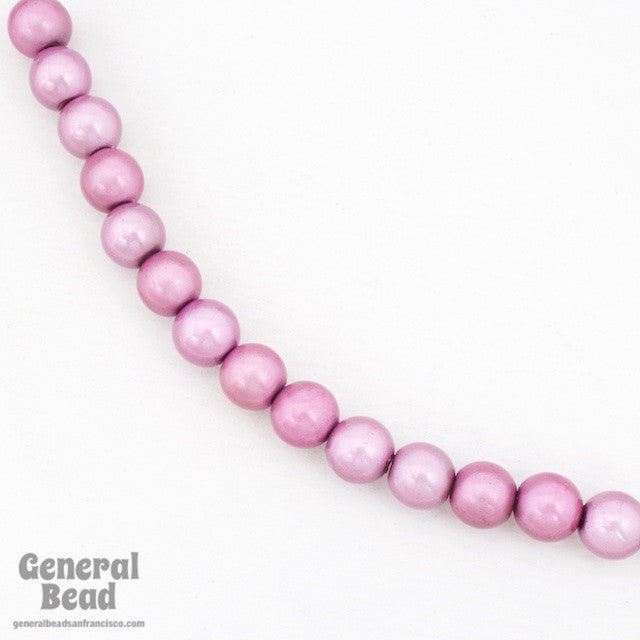 8mm round acrylic bead with pink reflective resin coating.