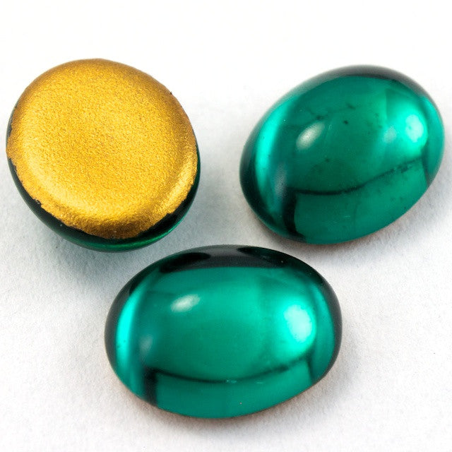 8mm x 10mm emerald smooth domed glass oval cabochon.