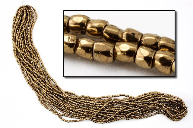 Size 9/0 (2.6mm) 3-cut glass seed bead in metallic bronze.