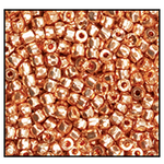 Size 9/0 (2.6mm) 3-cut glass seed bead in metallic gold.