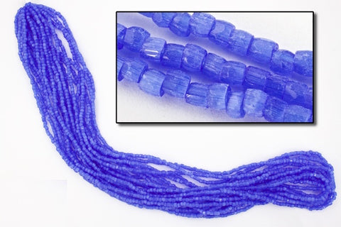 Size 9/0 (2.6mm) 3-cut glass seed bead in satin blue.