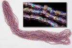 Size 9/0 (2.6mm) 3-cut glass seed bead in transparent iridescent light amethyst.