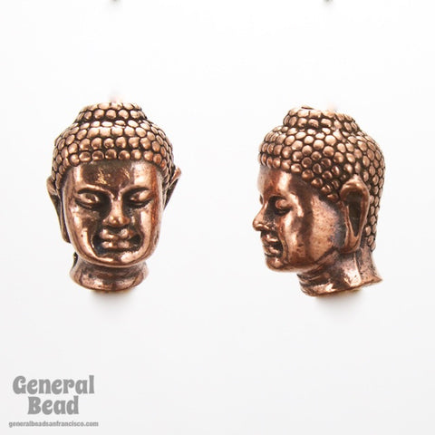 10mm x 14mm antique copper Buddha head with large 2.5mm vertical hole.
