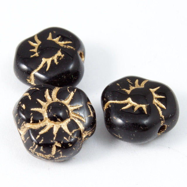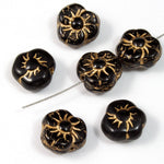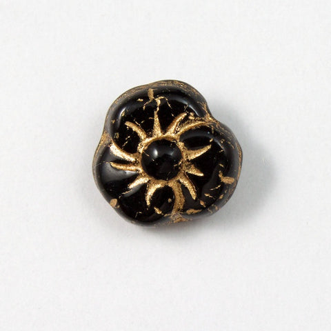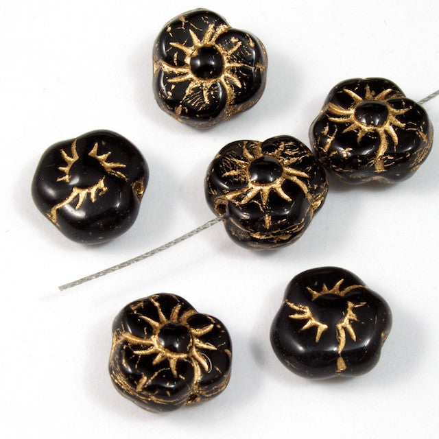 9mm black and gold Pansy flower with hole side to side.