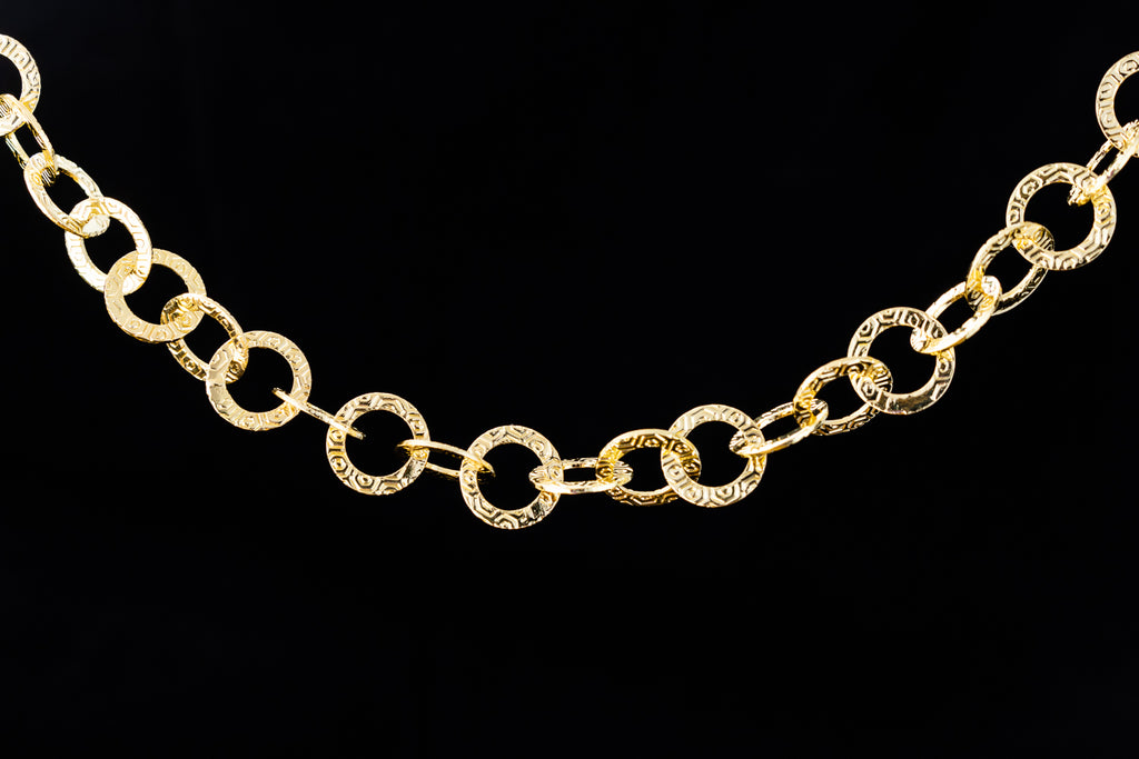 Cable chain with 9mm flat round textured links.