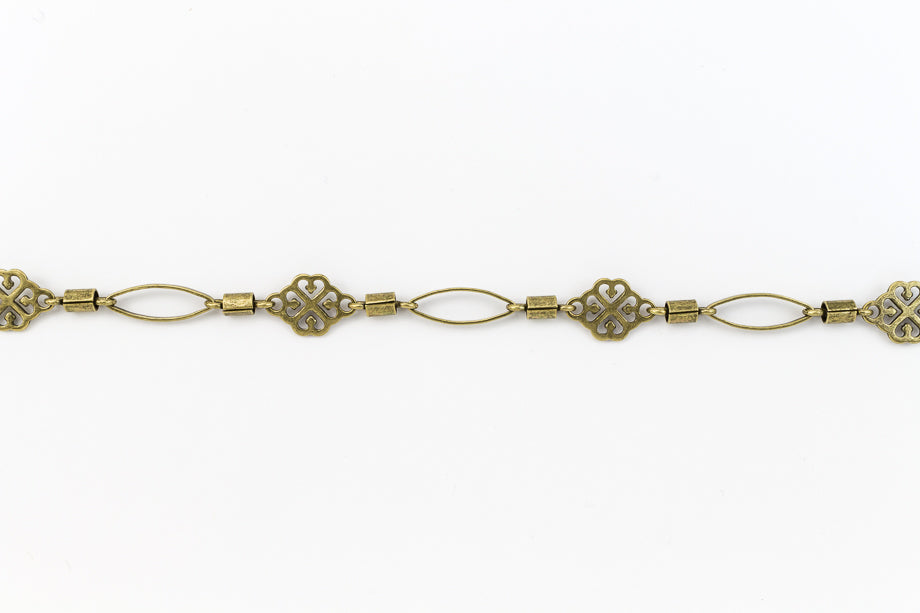 8mm Square Filigree Link Separated by a 4mm Barrel and 11mm x 5mm Eyelet Link.