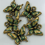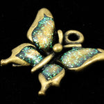 Antique Gold Butterfly with Aqua glitter on wings. Loop at top.