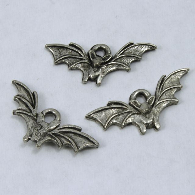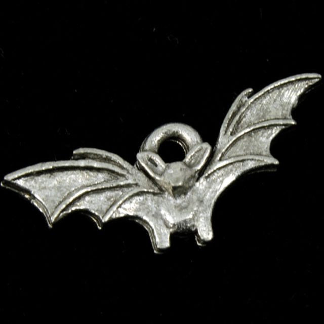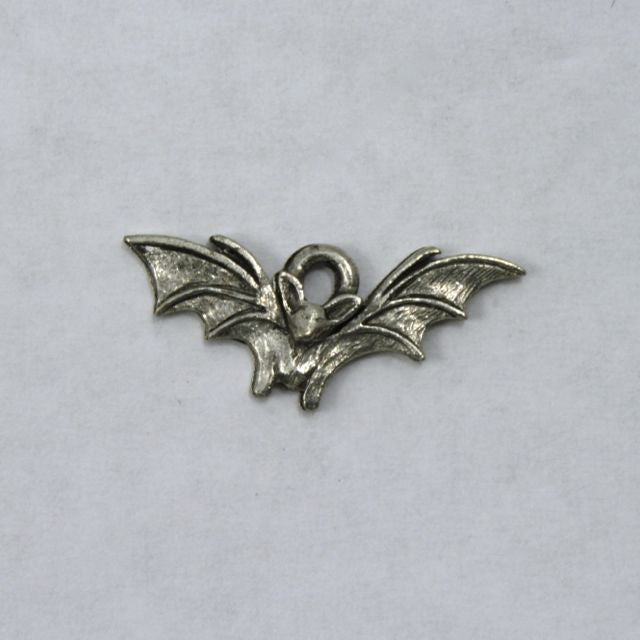 10mm x 20mm antique pewter detailed flying bat. Design on both sides.