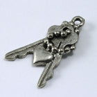 Two keys with ball chain and heart. Loop at top.