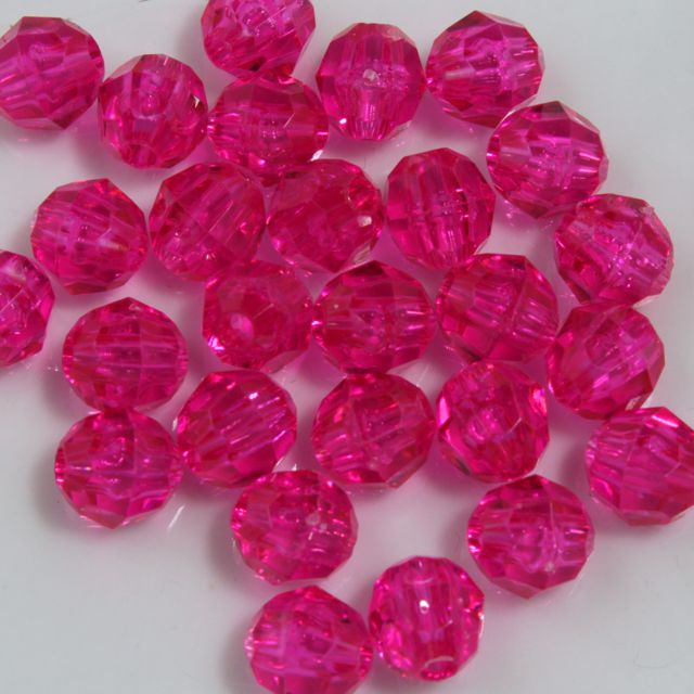Beadery Transparent Fuchsia Faceted Round Beads (6mm, 8mm)