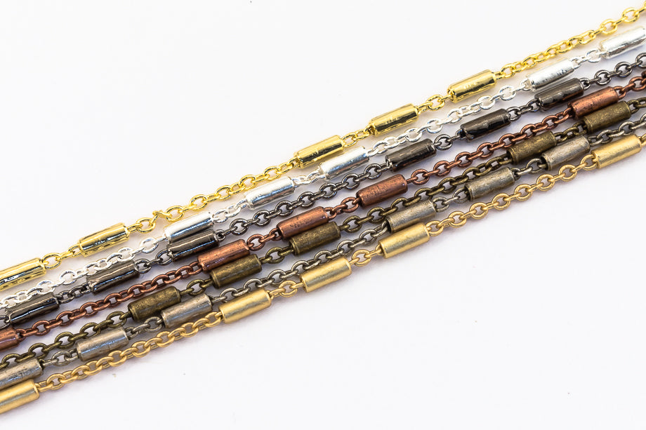 1mm petite cable chain with repeating section of 3 satellite bars.