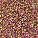 Size 11/0 transparent gold luster red cylinder seed bead.