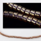 Size 11/0 transparent luster metallic rose gold cylinder seed bead.