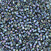 Size 11/0 transparent iridescent light grey cylinder seed bead.