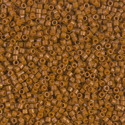 Size 11/0 Duracoat dyed opaque sienna cylinder seed bead.